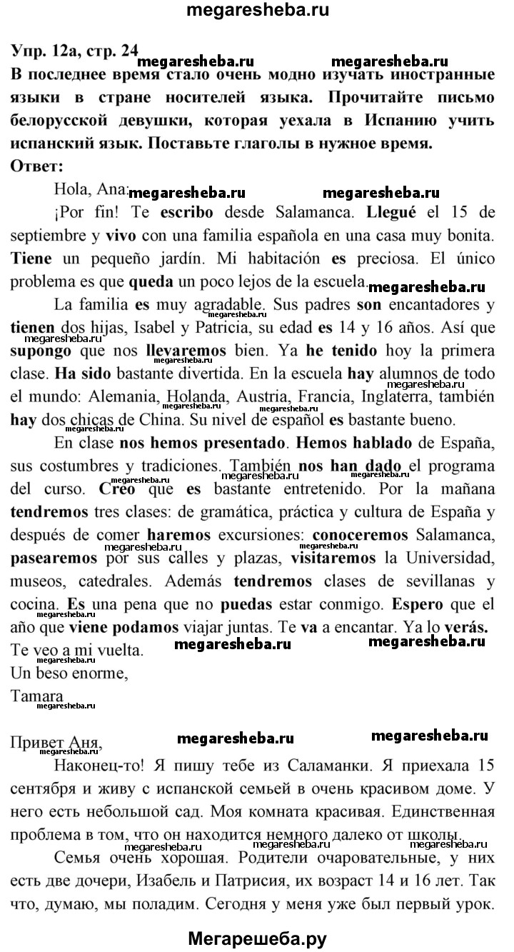 Подробный решебник (ГДЗ) по Испанскому языку за 8 (восьмой) класс - готовый ответ страница - 24. Авторы учебника: Цыбулева, Пушкина, Повышенный уровень. Издательство: Издательский центр БГУ 2016.
