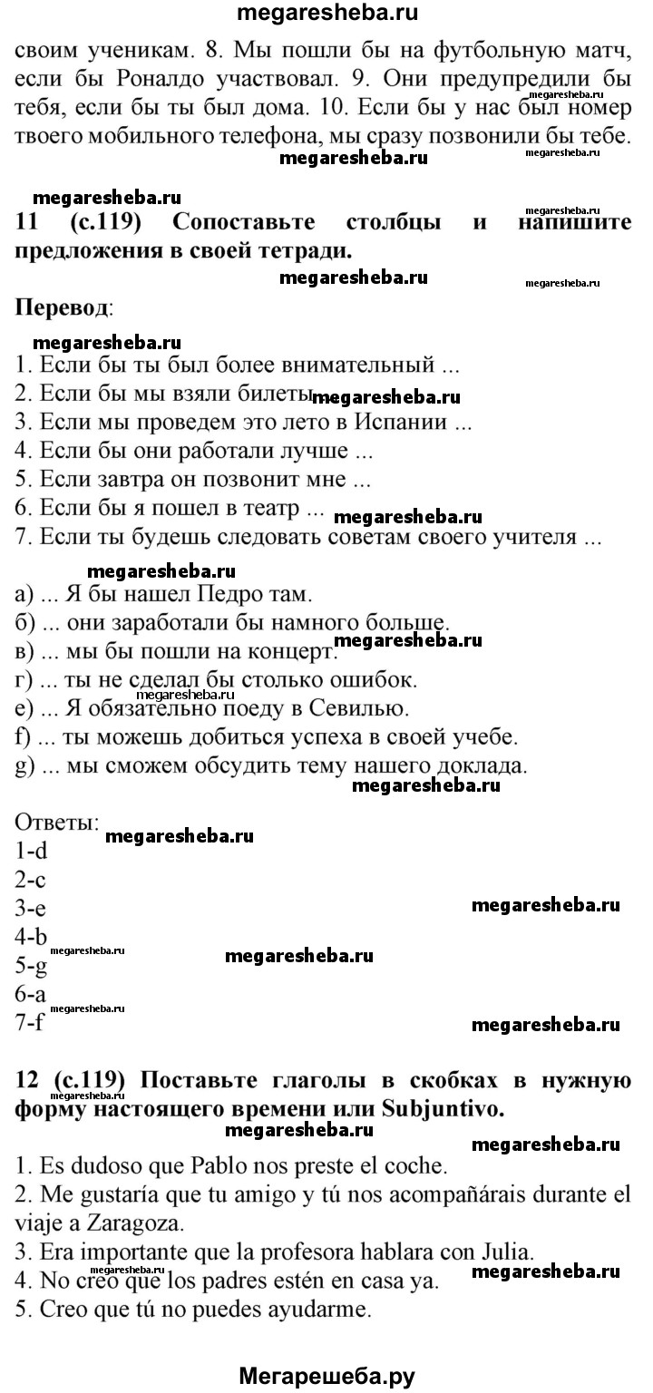 Подробный решебник (ГДЗ) по Испанскому языку за 9 (девятый) класс - готовый ответ часть 1. страница - 119-120. Авторы учебника: Цыбулева, Пушкина, Повышенный уровень. Издательство: Издательский центр БГУ 2017.