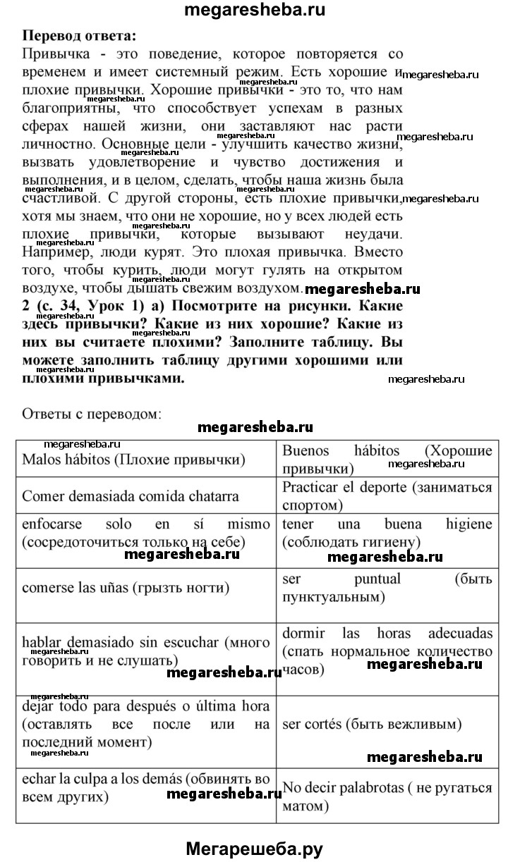 ГДЗ по испанскому языку 9 класс Цыбулева Повышенный уровень часть 1. страница - 34-35