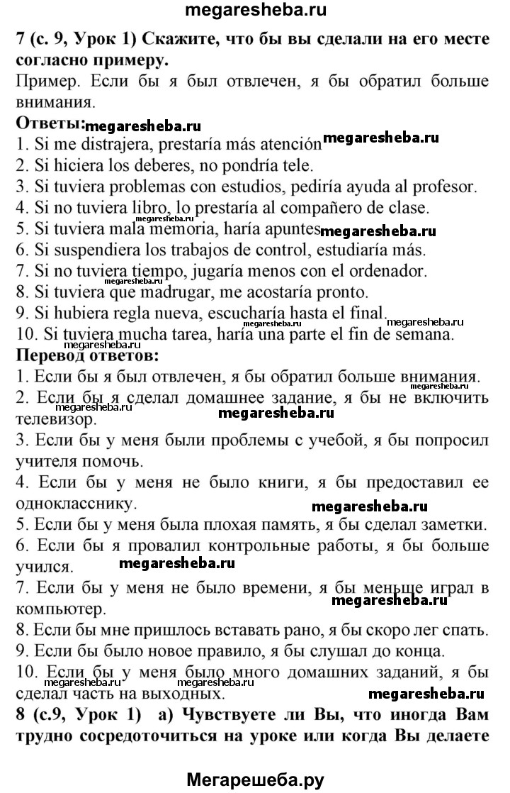 Подробный решебник (ГДЗ) по Испанскому языку за 9 (девятый) класс - готовый ответ часть 1. страница - 9. Авторы учебника: Цыбулева, Пушкина, Повышенный уровень. Издательство: Издательский центр БГУ 2017.
