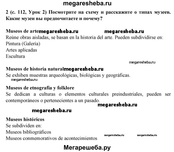 Подробный решебник (ГДЗ) по Испанскому языку за 9 (девятый) класс - готовый ответ часть 2. страница - 112. Авторы учебника: Цыбулева, Пушкина, Повышенный уровень. Издательство: Издательский центр БГУ 2017.