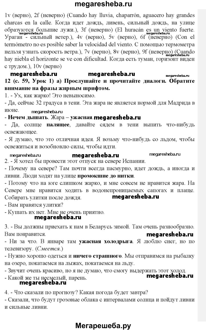 Подробный решебник (ГДЗ) по Испанскому языку за 9 (девятый) класс - готовый ответ часть 2. страница - 59. Авторы учебника: Цыбулева, Пушкина, Повышенный уровень. Издательство: Издательский центр БГУ 2017.