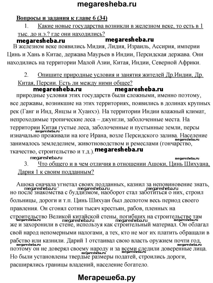 Подробный решебник (ГДЗ) по Истории за 5 (пятый) класс - готовый ответ § - Вопросы к главе 6. Авторы учебника: Михайловский. Издательство: Русское слово 2015.