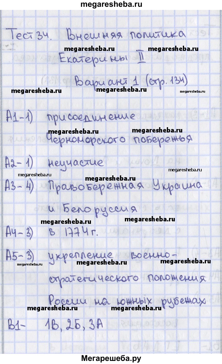 Подробный решебник (ГДЗ) по Истории за 7 (седьмой) класс контрольно-измерительные материалы - готовый ответ тест 34. вариант - 1. Авторы учебника: Волкова. Издательство: ВАКО 2017.