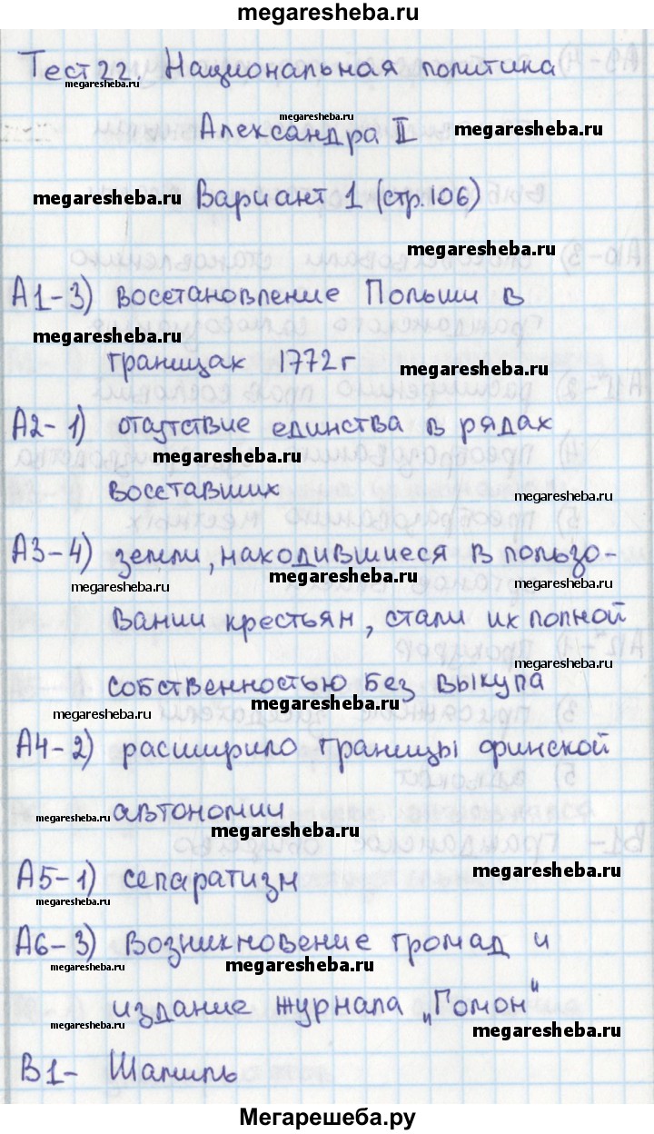 Подробный решебник (ГДЗ) по Истории за 8 (восьмой) класс контрольно-измерительные материалы России - готовый ответ тест 22. вариант - 1. Авторы учебника: Волкова. Издательство: ВАКО 2017.