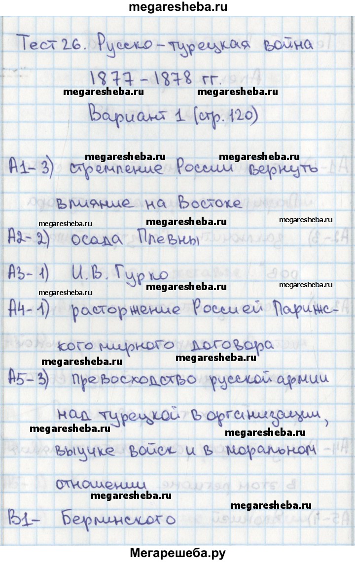 Подробный решебник (ГДЗ) по Истории за 8 (восьмой) класс контрольно-измерительные материалы России - готовый ответ тест 26. вариант - 1. Авторы учебника: Волкова. Издательство: ВАКО 2017.