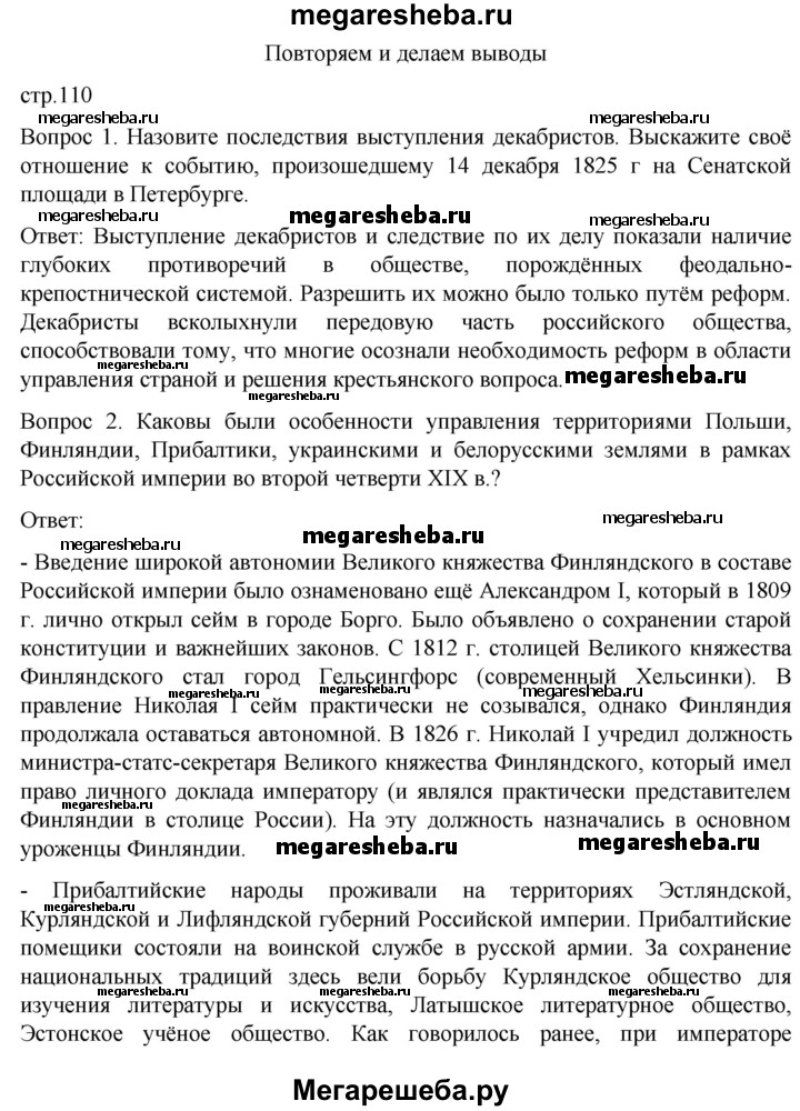 ГДЗ по истории 9 класс Арсентьев часть 1. страница - 110