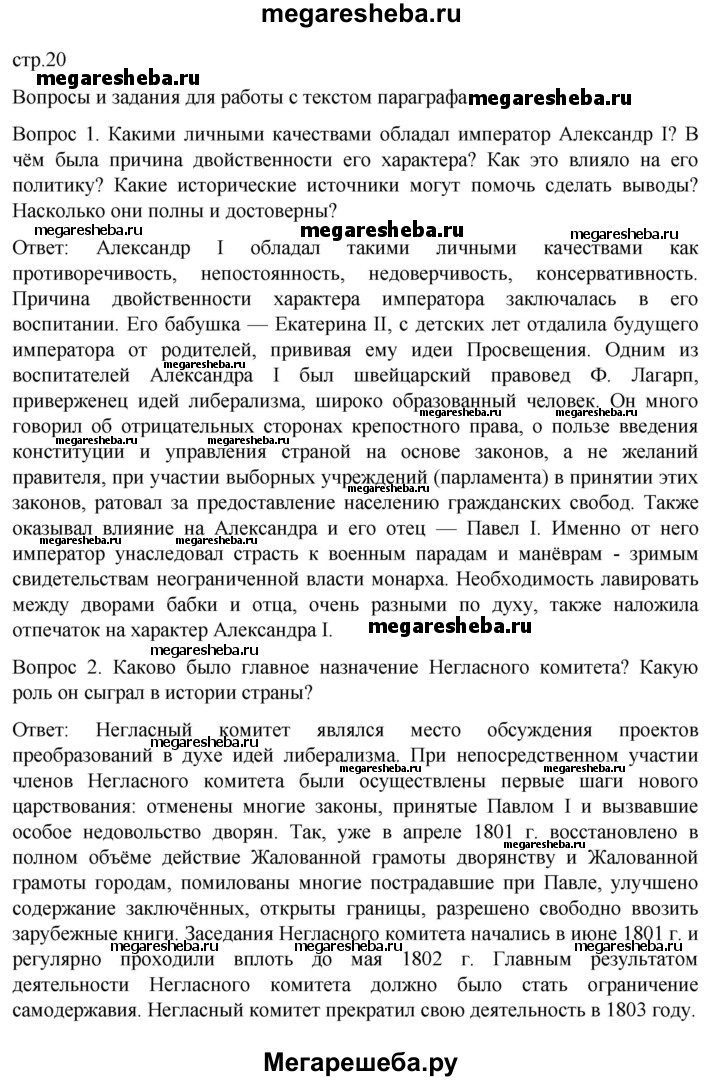 Подробный решебник (ГДЗ) по Истории за 9 (девятый) класс - готовый ответ часть 1. страница - 20. Авторы учебника: Арсентьев, Данилов, Левандовский, Торкунов. Издательство: Просвещение 2016-2023.