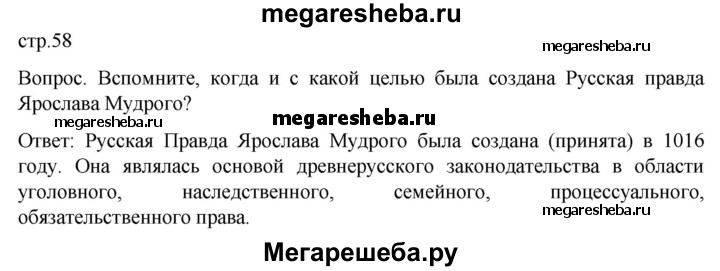 Подробный решебник (ГДЗ) по Истории за 9 (девятый) класс - готовый ответ часть 1. страница - 58. Авторы учебника: Арсентьев, Данилов, Левандовский, Торкунов. Издательство: Просвещение 2016-2023.