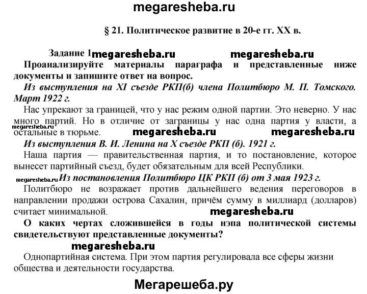Подробный решебник (ГДЗ) по Истории за 9 (девятый) класс рабочая тетрадь - готовый ответ §21 - 1. Авторы учебника: Данилов, Косулина. Издательство: Просвещение 2016.