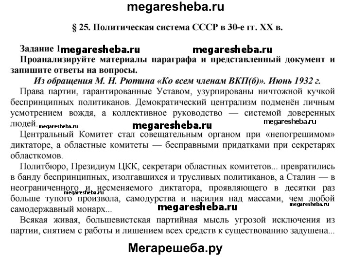 Подробный решебник (ГДЗ) по Истории за 9 (девятый) класс рабочая тетрадь - готовый ответ §25 - 1. Авторы учебника: Данилов, Косулина. Издательство: Просвещение 2016.