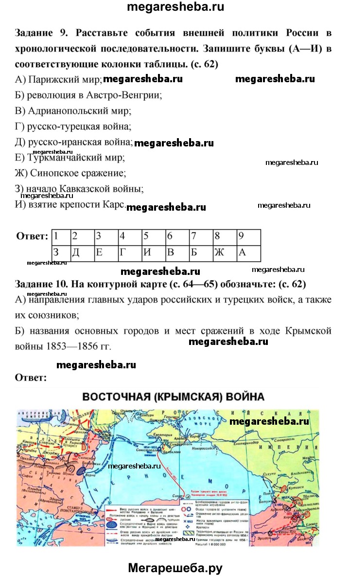 Подробный решебник (ГДЗ) по Истории за 9 (девятый) класс рабочая тетрадь - готовый ответ часть 1 (страница) - 62. Авторы учебника: Данилов, Косулина, Лакутин, Макарова. Издательство: Просвещение .
