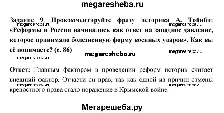 Подробный решебник (ГДЗ) по Истории за 9 (девятый) класс рабочая тетрадь - готовый ответ часть 1 (страница) - 86. Авторы учебника: Данилов, Косулина, Лакутин, Макарова. Издательство: Просвещение .