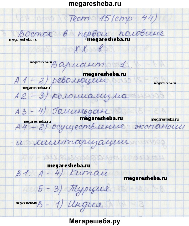 Подробный решебник (ГДЗ) по Истории за 9 (девятый) класс контрольно-измерительные материалы Новейшая - готовый ответ тест 15. вариант - 1. Авторы учебника: Волкова. Издательство: ВАКО 2017.