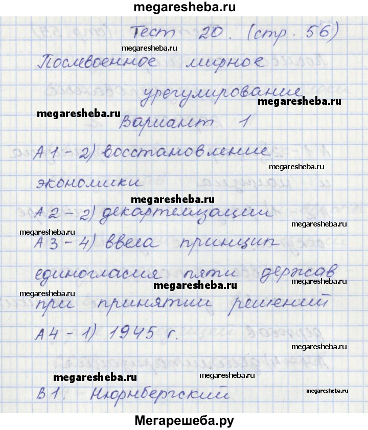 Подробный решебник (ГДЗ) по Истории за 9 (девятый) класс контрольно-измерительные материалы Новейшая - готовый ответ тест 20. вариант - 1. Авторы учебника: Волкова. Издательство: ВАКО 2017.