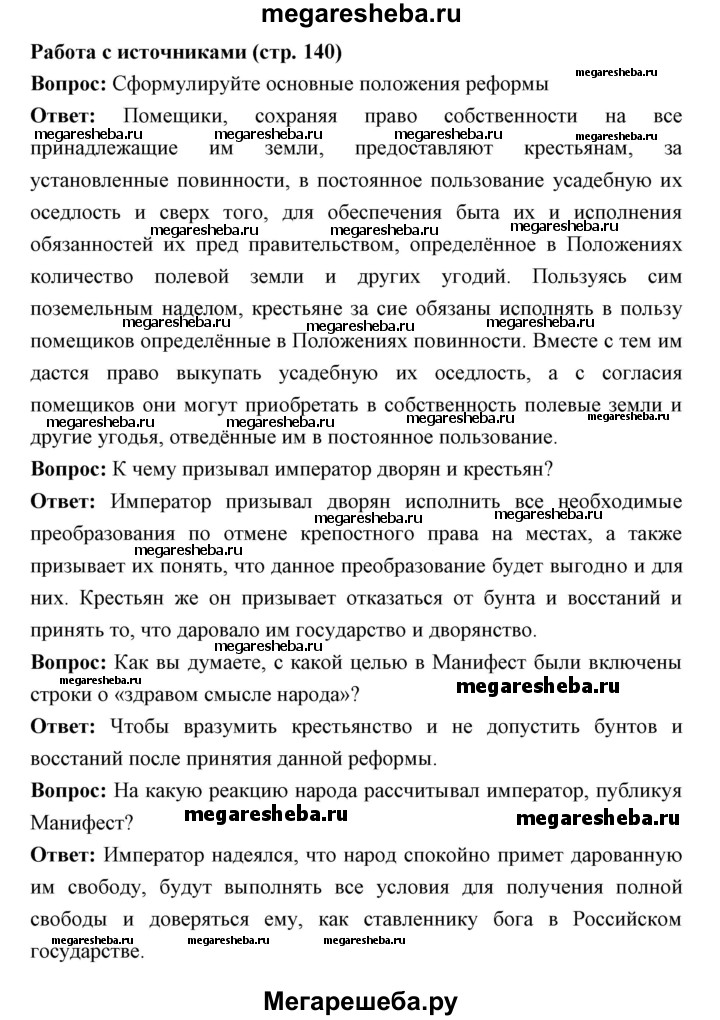 Подробный решебник (ГДЗ) по Истории за 9 (девятый) класс - готовый ответ страница - 140. Авторы учебника: Ляшенко, Волобуев, Симонов. Издательство: Дрофа 2016.