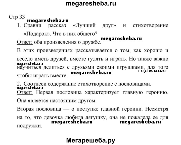 Подробный решебник (ГДЗ) по Литературе за 1 (первый) класс - готовый ответ часть 2. страница - 33. Авторы учебника: Климанова, Горецкий, Голованова. Издательство: Просвещение 2018-2023.
