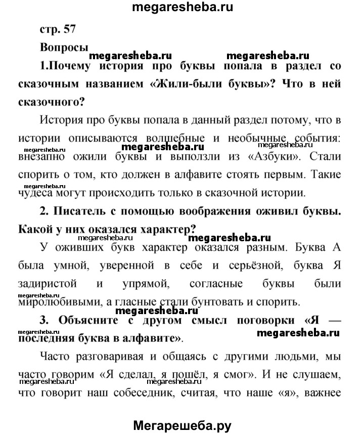 Подробный решебник (ГДЗ) по Литературе за 1 (первый) класс - готовый ответ часть 1 (страница) - 57. Авторы учебника: Климанова, Виноградская, Горецкий. Издательство: Просвещение 2017-2023.