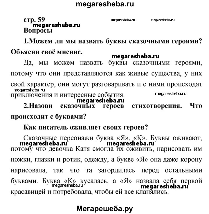 Подробный решебник (ГДЗ) по Литературе за 1 (первый) класс - готовый ответ часть 1 (страница) - 59. Авторы учебника: Климанова, Виноградская, Горецкий. Издательство: Просвещение 2017-2023.