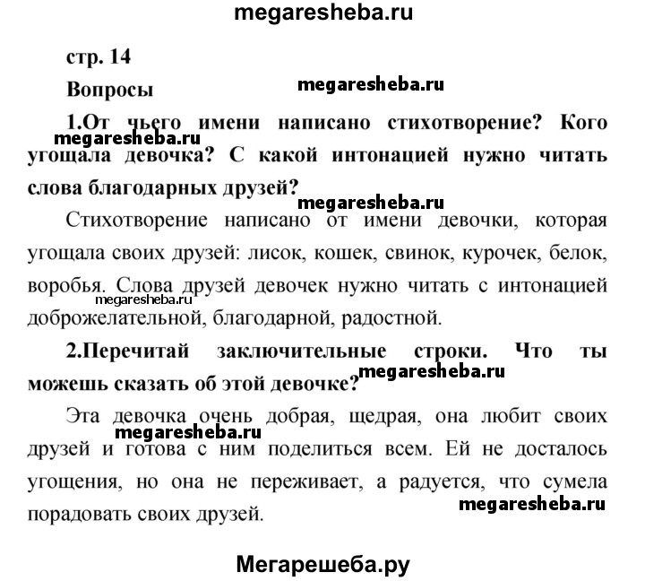ГДЗ по литературе 1 класс Климанова часть 2 (страница) - 14