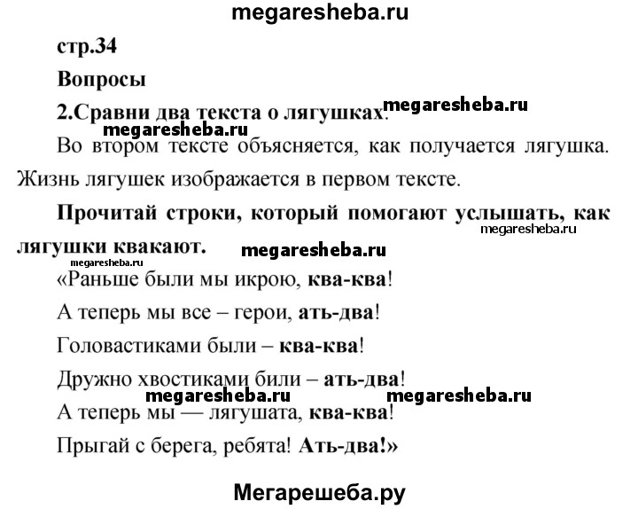 Подробный решебник (ГДЗ) по Литературе за 1 (первый) класс - готовый ответ часть 2 (страница) - 34. Авторы учебника: Климанова, Виноградская, Горецкий. Издательство: Просвещение 2017-2023.