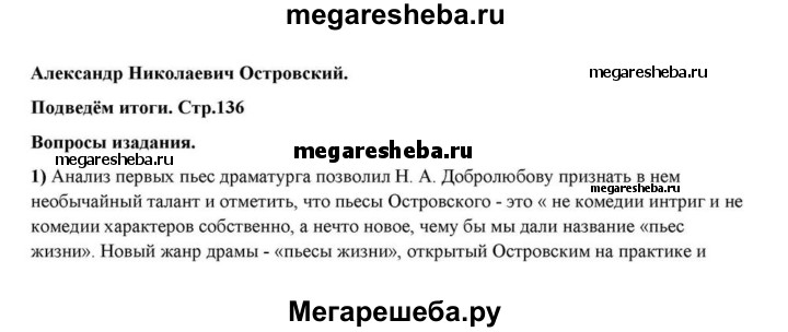 Подробный решебник (ГДЗ) по Литературе за 10 (десятый) класс - готовый ответ страница - 136. Авторы учебника: Курдюмова, Марьина, Колокольцев, Базовый уровень. Издательство: Дрофа 2018.