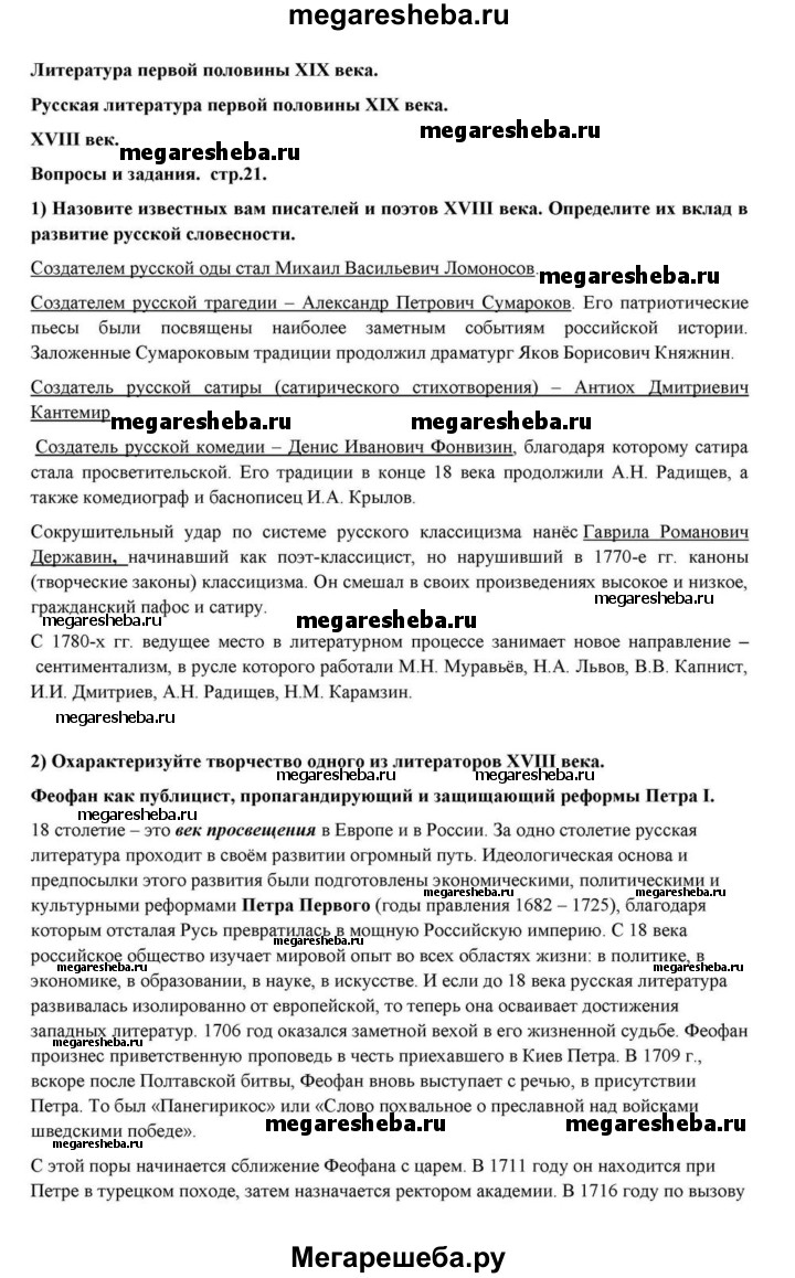 ГДЗ по литературе 10 класс Курдюмова Базовый уровень страница - 21