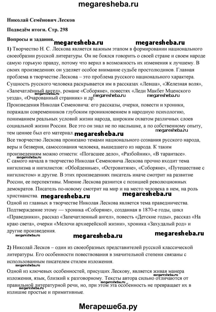ГДЗ по литературе 10 класс Курдюмова Базовый уровень страница - 298
