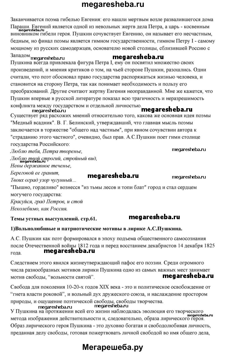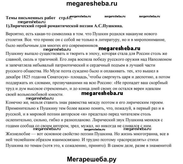 ГДЗ по литературе 10 класс Курдюмова Базовый уровень страница - 61