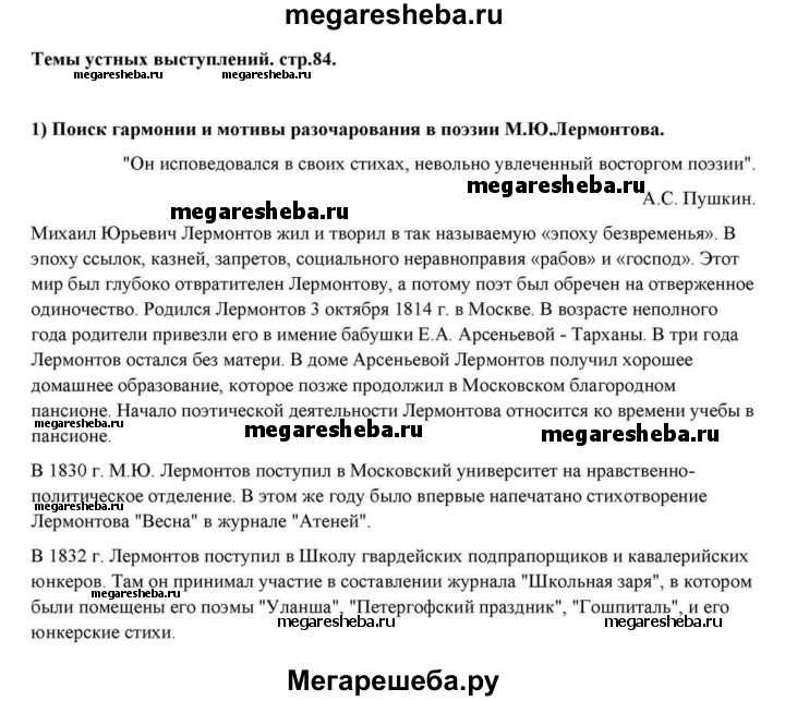 ГДЗ по литературе 10 класс Курдюмова Базовый уровень страница - 84