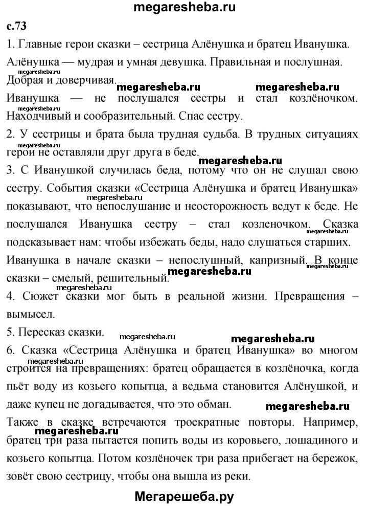 ГДЗ по литературе 2 класс Климанова часть 1. страница - 73