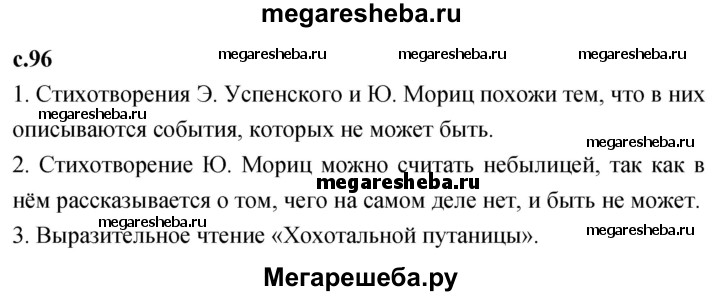Подробный решебник (ГДЗ) по Литературе за 2 (второй) класс - готовый ответ часть 1. страница - 96. Авторы учебника: Климанова, Виноградская, Горецкий. Издательство: Просвещение 2017-2023.