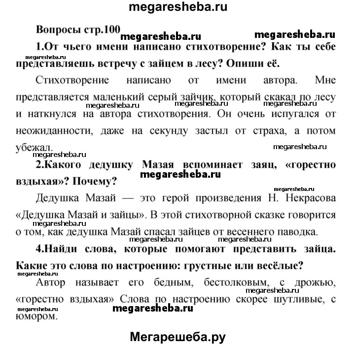 Подробный решебник (ГДЗ) по Литературе за 2 (второй) класс - готовый ответ часть 2. страница - 100. Авторы учебника: Климанова, Виноградская, Горецкий. Издательство: Просвещение 2017-2023.