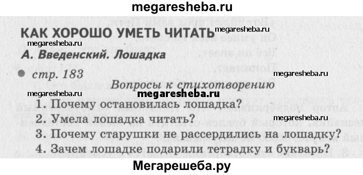 Подробный решебник (ГДЗ) по Литературе за 2 (второй) класс - готовый ответ часть 1 (страница) - 183. Авторы учебника: Климанова, Горецкий, Голованова. Издательство: Просвещение 2018-2023.
