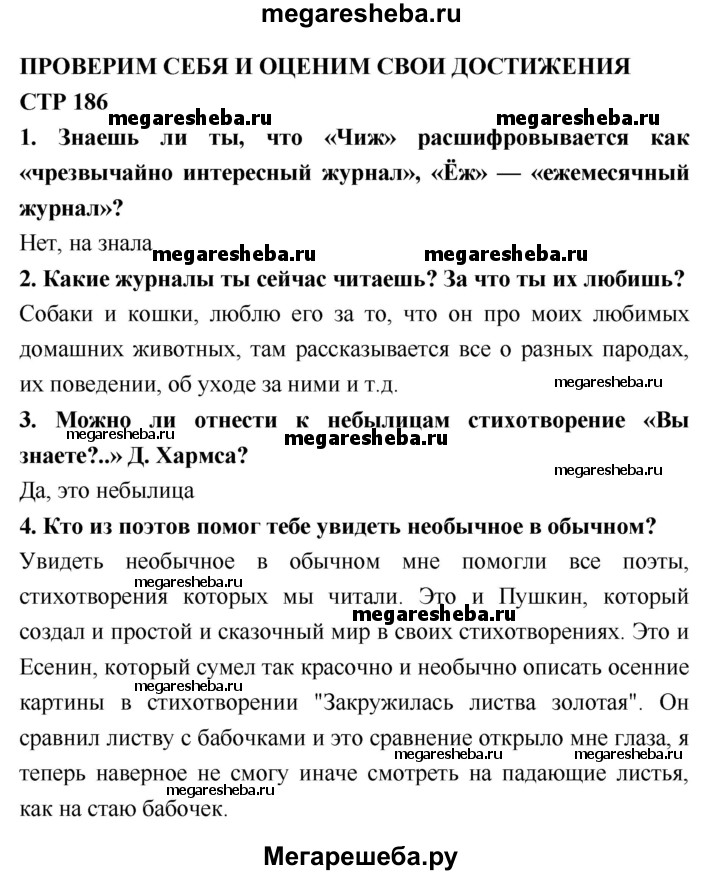 Подробный решебник (ГДЗ) по Литературе за 2 (второй) класс - готовый ответ часть 1 (страница) - 186. Авторы учебника: Климанова, Горецкий, Голованова. Издательство: Просвещение 2018-2023.