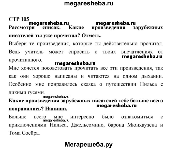 Подробный решебник (ГДЗ) по Литературе за 4 (четвертый) класс рабочая тетрадь - готовый ответ страница - 105. Авторы учебника: Бойкина, Виноградская. Издательство: Просвещение 2016-2023.
