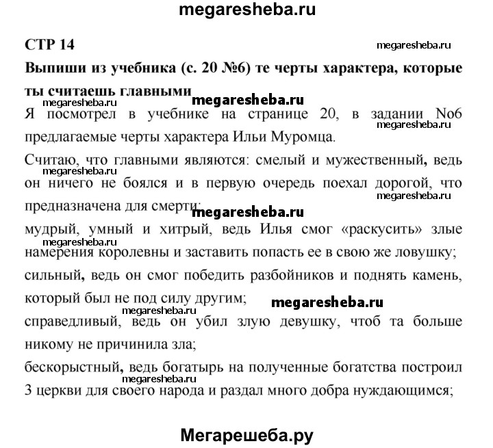 Подробный решебник (ГДЗ) по Литературе за 4 (четвертый) класс рабочая тетрадь - готовый ответ страница - 14. Авторы учебника: Бойкина, Виноградская. Издательство: Просвещение 2016-2023.