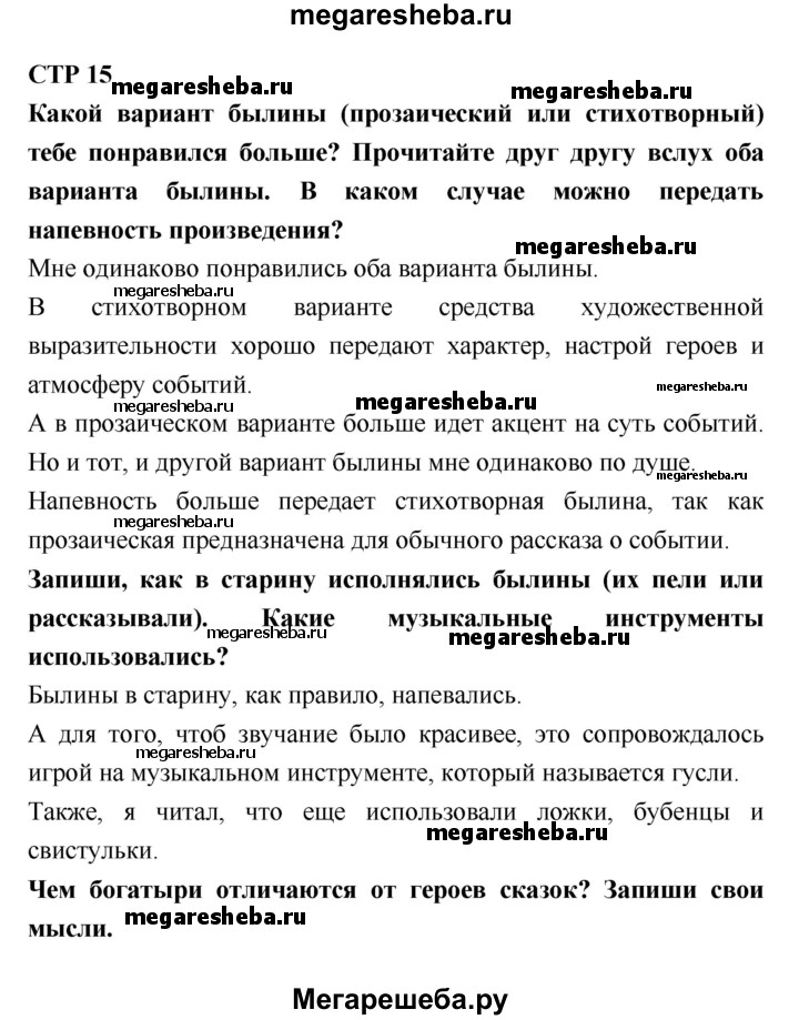 Подробный решебник (ГДЗ) по Литературе за 4 (четвертый) класс рабочая тетрадь - готовый ответ страница - 15. Авторы учебника: Бойкина, Виноградская. Издательство: Просвещение 2016-2023.