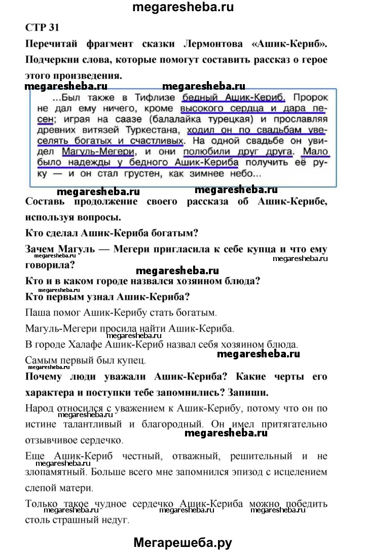 Подробный решебник (ГДЗ) по Литературе за 4 (четвертый) класс рабочая тетрадь - готовый ответ страница - 31. Авторы учебника: Бойкина, Виноградская. Издательство: Просвещение 2016-2023.