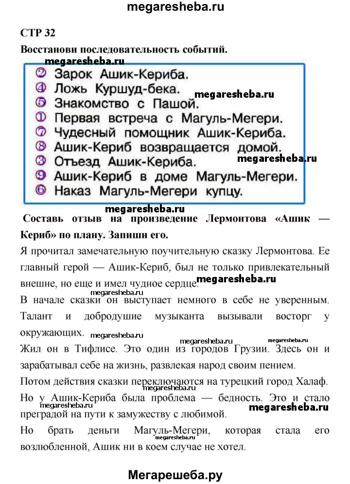 Подробный решебник (ГДЗ) по Литературе за 4 (четвертый) класс рабочая тетрадь - готовый ответ страница - 32. Авторы учебника: Бойкина, Виноградская. Издательство: Просвещение 2016-2023.