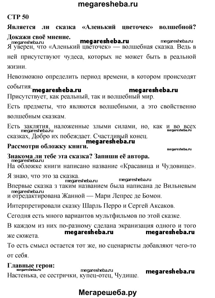 Подробный решебник (ГДЗ) по Литературе за 4 (четвертый) класс рабочая тетрадь - готовый ответ страница - 50. Авторы учебника: Бойкина, Виноградская. Издательство: Просвещение 2016-2023.