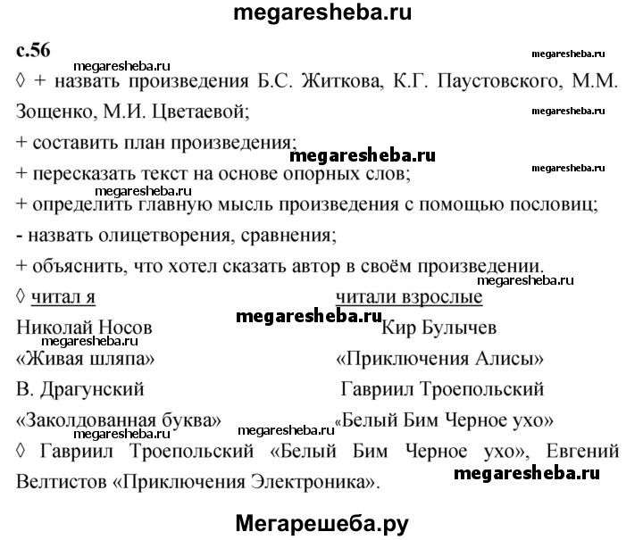 Подробный решебник (ГДЗ) по Литературе за 4 (четвертый) класс рабочая тетрадь - готовый ответ страница - 56. Авторы учебника: Бойкина, Виноградская. Издательство: Просвещение 2016-2023.
