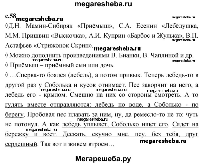 Подробный решебник (ГДЗ) по Литературе за 4 (четвертый) класс рабочая тетрадь - готовый ответ страница - 58. Авторы учебника: Бойкина, Виноградская. Издательство: Просвещение 2016-2023.
