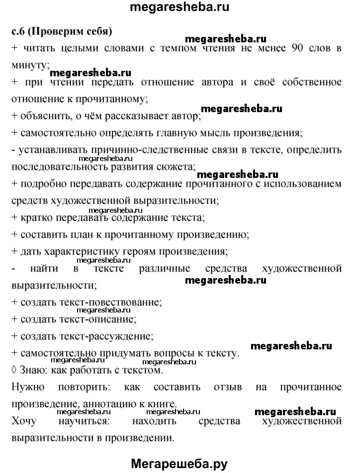 Подробный решебник (ГДЗ) по Литературе за 4 (четвертый) класс рабочая тетрадь - готовый ответ страница - 6. Авторы учебника: Бойкина, Виноградская. Издательство: Просвещение 2016-2023.