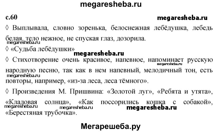 Подробный решебник (ГДЗ) по Литературе за 4 (четвертый) класс рабочая тетрадь - готовый ответ страница - 60. Авторы учебника: Бойкина, Виноградская. Издательство: Просвещение 2016-2023.