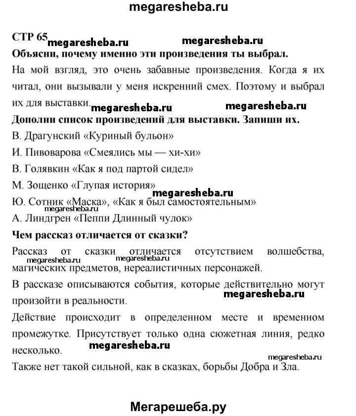 Подробный решебник (ГДЗ) по Литературе за 4 (четвертый) класс рабочая тетрадь - готовый ответ страница - 65. Авторы учебника: Бойкина, Виноградская. Издательство: Просвещение 2016-2023.