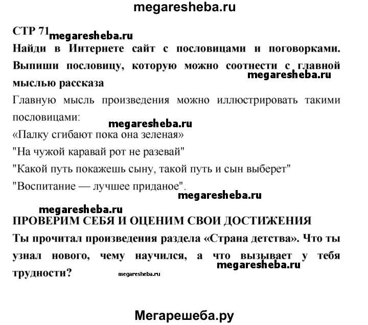 Подробный решебник (ГДЗ) по Литературе за 4 (четвертый) класс рабочая тетрадь - готовый ответ страница - 71. Авторы учебника: Бойкина, Виноградская. Издательство: Просвещение 2016-2023.