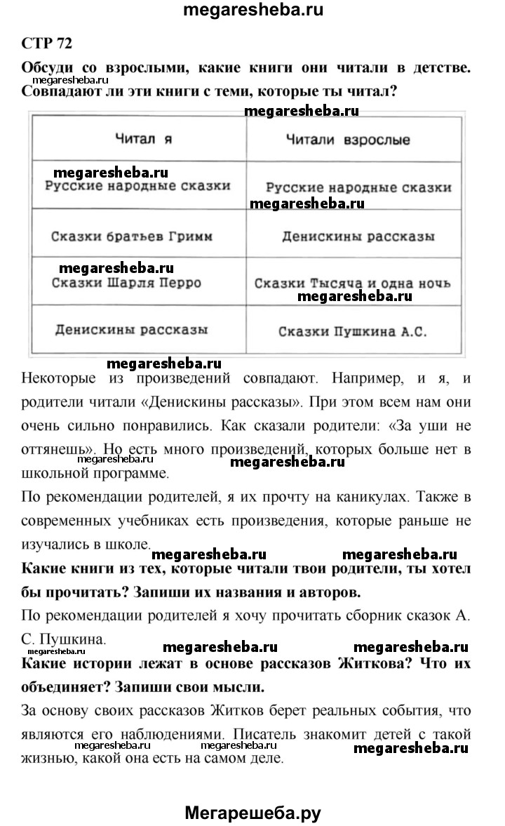 Подробный решебник (ГДЗ) по Литературе за 4 (четвертый) класс рабочая тетрадь - готовый ответ страница - 72. Авторы учебника: Бойкина, Виноградская. Издательство: Просвещение 2016-2023.