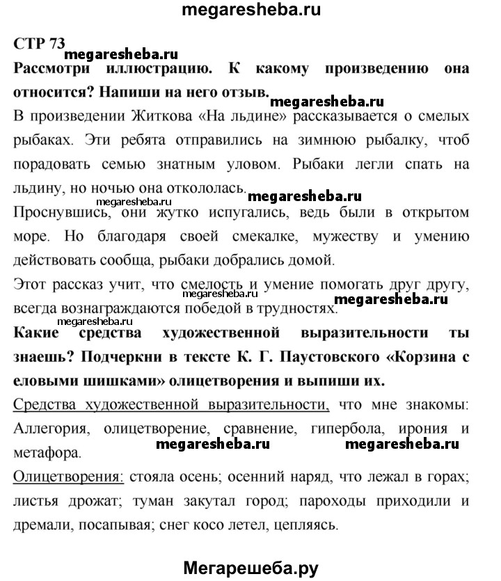 Подробный решебник (ГДЗ) по Литературе за 4 (четвертый) класс рабочая тетрадь - готовый ответ страница - 73. Авторы учебника: Бойкина, Виноградская. Издательство: Просвещение 2016-2023.
