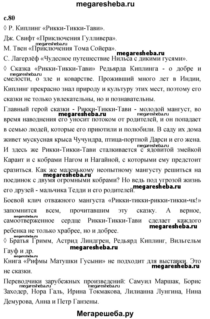Подробный решебник (ГДЗ) по Литературе за 4 (четвертый) класс рабочая тетрадь - готовый ответ страница - 80. Авторы учебника: Бойкина, Виноградская. Издательство: Просвещение 2016-2023.
